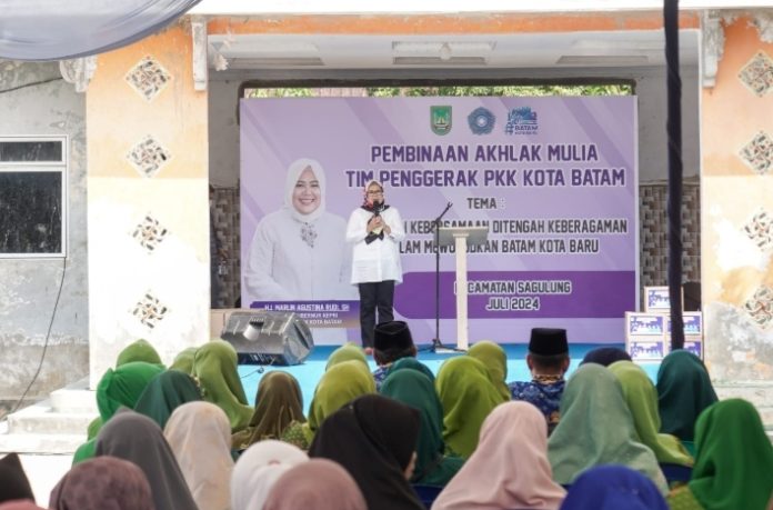 BATAM, BATAMOKE.COm – Wakil Gubernur Kepulauan Riau sekaligus Ketua Tim Penggerak Pemberdayaan Kesejahteraan Keluarga (TP PKK) Kota Batam, Marlin Agustina membuka kegiatan Pembinaan Akhlak Mulia Tim Penggerak PKK Kota Batam Sekaligus Pembagian Sembako untuk Lansia, di fasum Perumahan Griya Permata, Kelurahan Sungai Langkai, Kecamatan Sagulung, Rabu (17/7/2024).