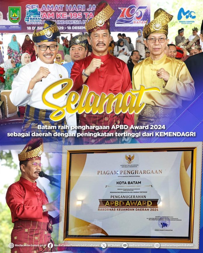 BATAM, BATAMOKE.COM – Pemerintah Kota (Pemko) Batam menerima penghargaan bergengsi dalam ajang APBD Award 2024. Penghargaan itu diberikan Kementerian Dalam Negeri (Kemendagri) RI.