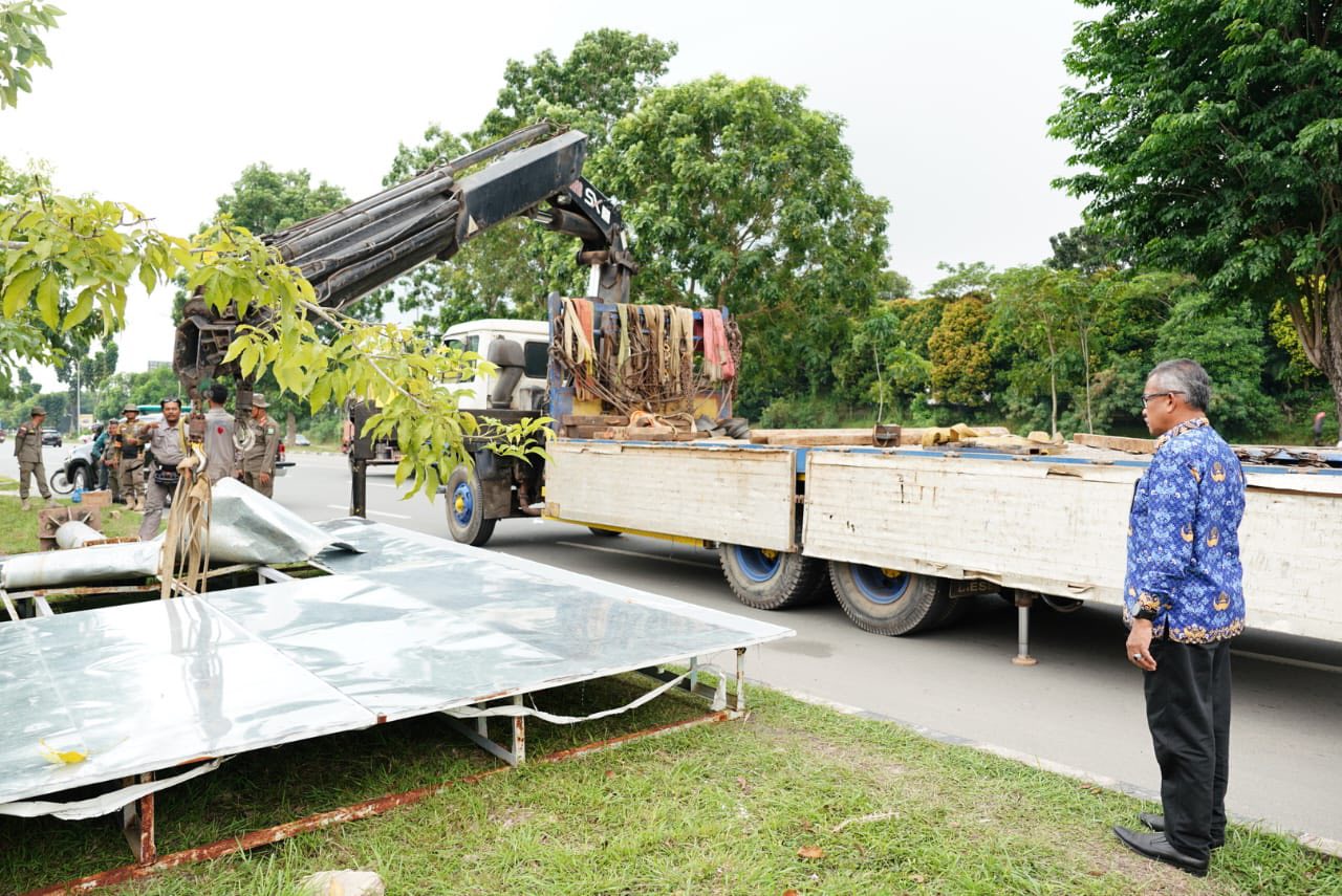 BATAM, BATAMOKE.COM – Menggunakan crane, bangunan reklame berukuran 4 x 6 di pinggir jalan sekitar perumahan Eden Park dibongkar oleh Tim Task Force, Selasa (17/06/2025). Pembongkaran disaksikan Ketua Tim Task Force sekaligus Sekretaris Daerah Kota Batam, Jefridin, M.Pd. didampingi Kasatpol PP, Imam Tohari.