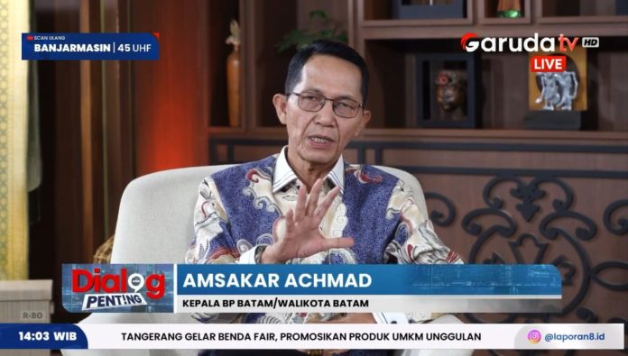 BATAM, BATAMOKE.COM – Batam terus memperkuat diri sebagai pusat investasi nasional yang terhubung dengan pasar dunia. Hal tersebut disampaikan Wali Kota sekaligus Kepala Badan Pengusahaan (BP) Batam, Amsakar Achmad, dalam program Dialog Penting di GarudaTV yang menyoroti kemajuan pesat ekosistem investasi di Kota Batam.