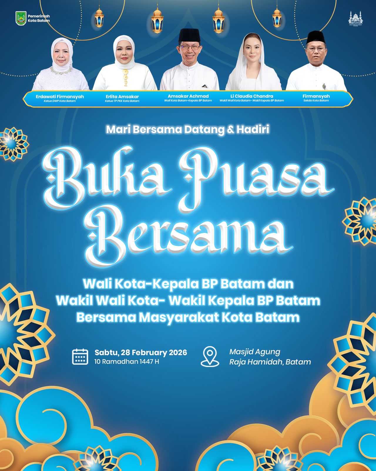 Pemerintah Kota Batam mengundang seluruh masyarakat untuk hadir dalam kegiatan Buka Puasa Bersama bersama Wali Kota Batam-Kepala BP Batam dan Wakil Wali Kota Batam-Wakil Kepala BP Batam.